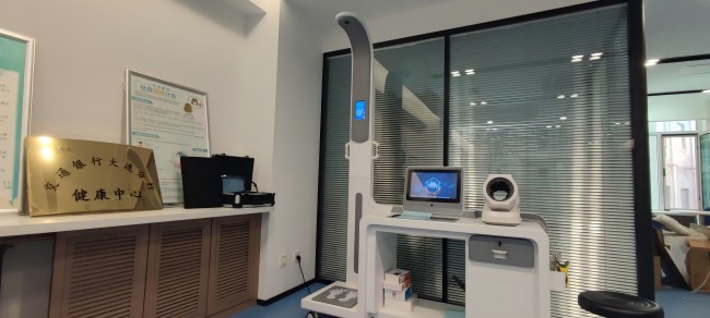 除瞭SH-T17智能健康一體機,健康中心也配置瞭SH-202便攜式健康一體機,SH-202便攜式健康體檢一體機是上禾針對基層公衛推出的一款便攜式公共衛生檢測設備,可以通過平闆電腦等數據採集終端和數據管理軟件系統實現一體化整合,實現心電圖、心率、血糖、血壓、血氧飽和度、尿常規、體溫等多種參數檢測,快速建立居民電子健康檔案,與信息管理平台或健康檔案管理系統進行數據交互傳輸,可上傳或成批次/單獨下載調用數據,並提供接口開發包,支持将採集到的健康數據上傳至區域信息平台或健康檔案管理系統。