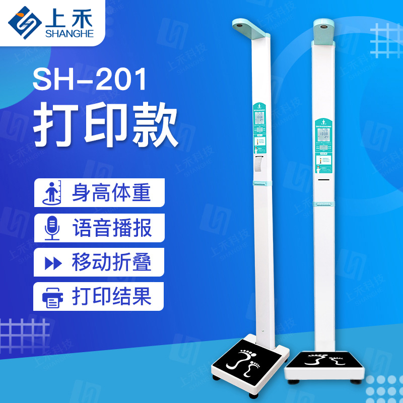 SH-600GX便攜式身高體重血壓心率一體機+條碼槍、SH-201智能雙屏電子身高體重測量儀打印款等明星産品及相關配套産品,設備全程引導式自動測量,語音播報,聲音響亮優美、字體夠大,更适合老年人群體;重量輕巧、便攜、方便移動,不僅滿足瞭日常需求,更是下鄉體檢類似場景的得力幫手。